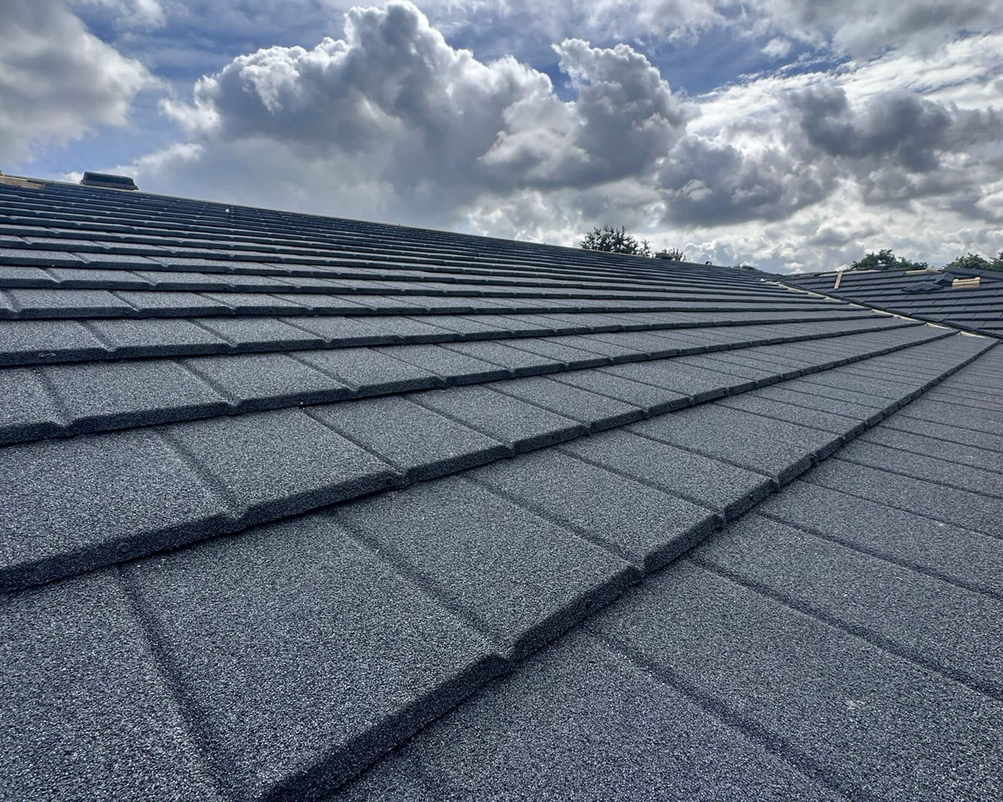 The roof was transformed with Britmet Slate 2000—a lightweight, durable metal tile system that delivers the look of natural slate with superior weather resistance and reduced structural load. All perimeter details, penetrations and junctions were renewed for a neat, compliant finish. The Polyroof liquid coating was applied to the internal gutter to create a seamless, fully bonded waterproof lining, strengthening a critical drainage area.